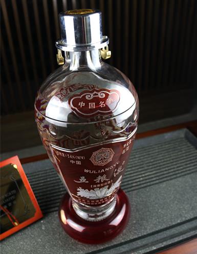瓶體為五糧液經(jīng)典鼓形瓶造型,經(jīng)繁復(fù)工藝手工打造而成,商標(biāo)圖案由紅白兩色燒制成型,經(jīng)手工雕刻、磨花而成,起筆收刀處卓爾不凡,猶如一件巧奪天工的藝術(shù)